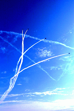 宮崎県入田原基地でのT4ブルーインパルスの曲技飛行です。